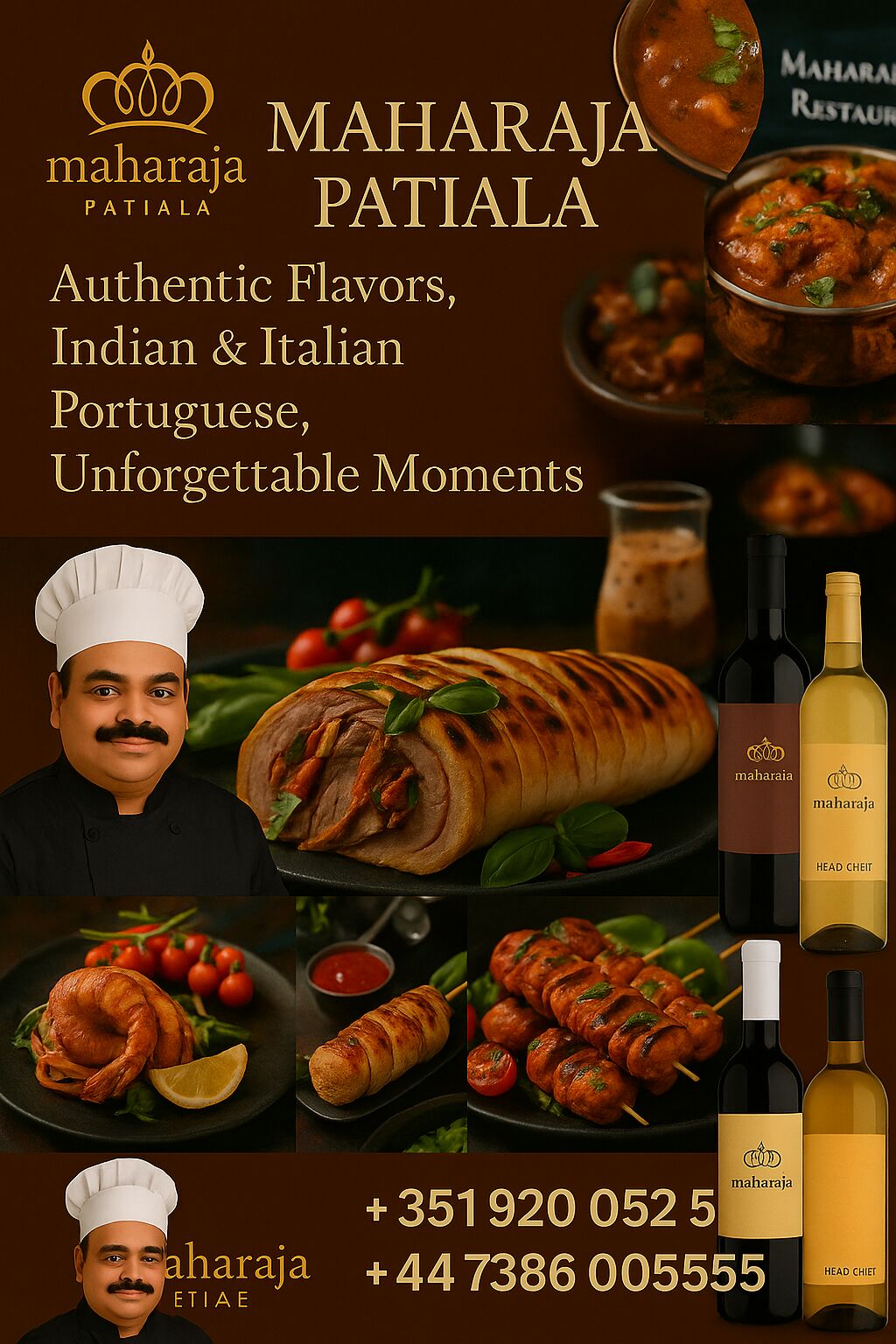 Body: Maharaja Patiala was born from a chef’s love of travel, authentic recipes and warm hospitality. Chef Suneer brings more than two decades of experience to every plate combining traditional Indian techniques with Italian soul and Portuguese freshness. Our kitchen is versatile: we serve bold masalas and delicate biryanis, hand-rolled pastas and wood-fired pizzas, fresh seafood and seasonal vegetarian From spicy Indian curries to rustic Italian pastas and fresh Portuguese favourites we cook everything you love. Drop us a message with what you’re craving and we’ll make it happen.